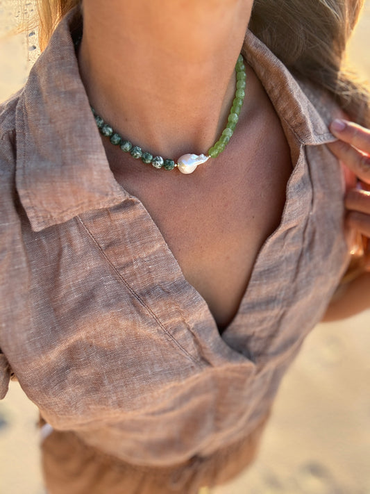 Yin Yang Gemstone and pearl choker necklace